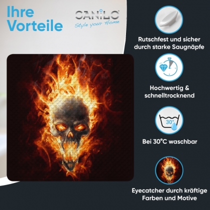 Badematte Totenkopf in Flammen 53 x 53 cm