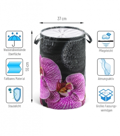 Platzsparend ✓ Der Wäschekorb eignet sich mit einer Höhe von 55 cm, ⌀ 37 cm ideal für kleine Räume. Mit 60 Litern bietet die Wäschebox viel Stauraum für eine Vielzahl an Gegenständen.